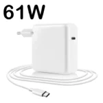 The product is a brand new 61W / 87W/ 96W Type-C adapter in white, designed for Apple MacBook laptops. It features a USB Type-C connector and is compatible with a range of Apple devices, including MacBook Air (M1, 2020), MacBook Air (Retina, 13-inch, 2020), MacBook Air (Retina, 13-inch, 2018 – 2019), MacBook Pro (13-inch, M1, 2020), MacBook Pro (13-inch, 2020), MacBook Pro (13-inch, 2016 – 2019), and MacBook (Retina, 12-inch, Early 2015 – 2017). Additionally, it’s compatible with iPad Pro 11-inch and iPad Pro 12.9-inch (3rd generation), MacBook Air (Retina, 13-inch, 2018 and later), and MacBook Pro (13-inch, 2016 and later). The adapter has a power output of 61W and includes one USB Type-C port, making it a versatile choice for charging and powering these Apple devices.