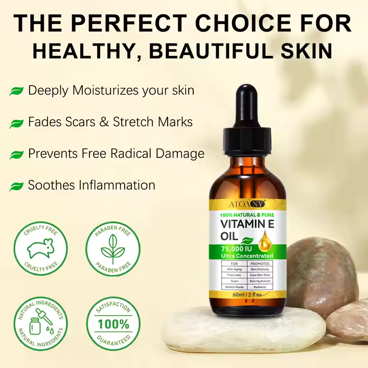 As a powerful antioxidant, Vitamin E fights free radicals that cause premature aging. Regular use helps diminish fine lines, wrinkles, and sagging skin, giving you a youthful glow.
